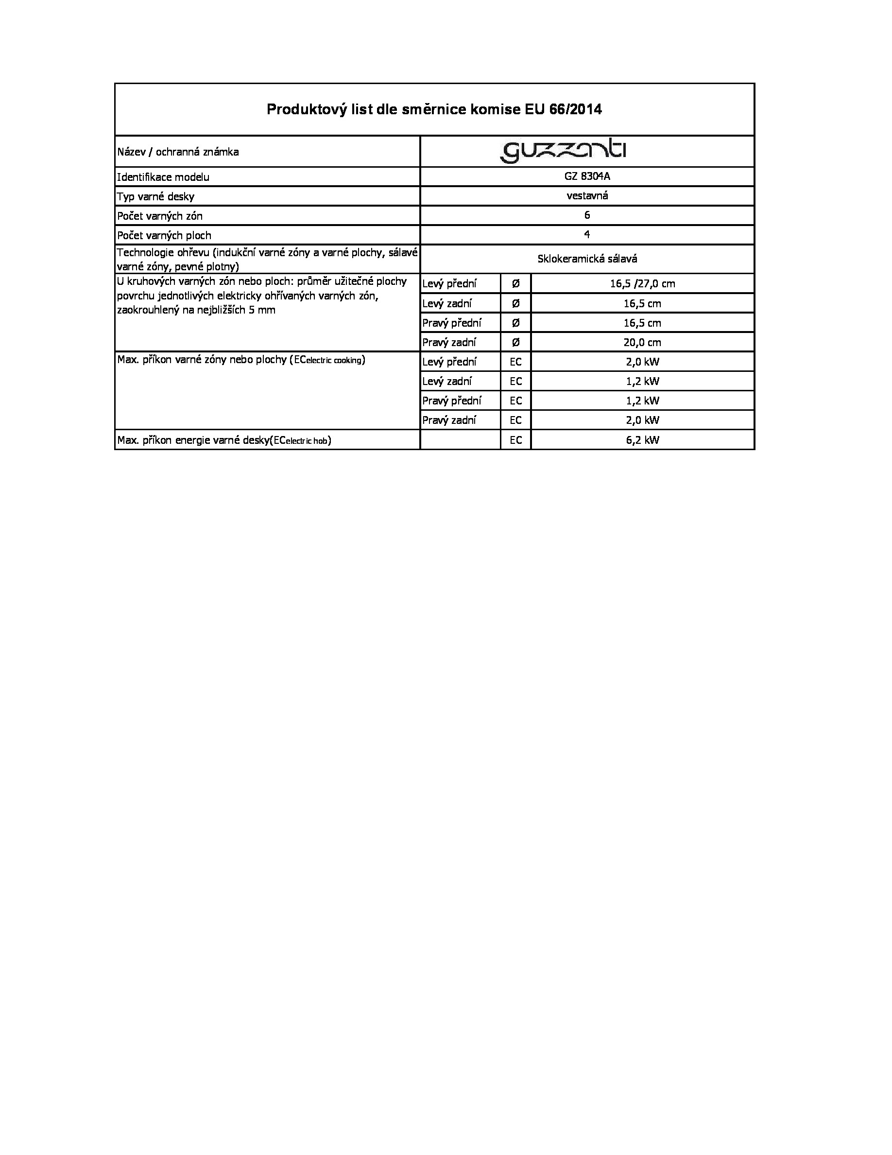 Cooktop properties